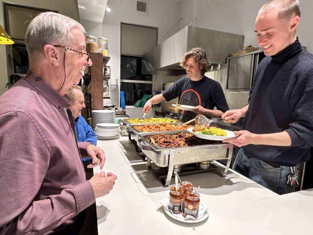 Schuif dan aan bij De Bijkeuken. Vier keer per week wordt er (halal) gekookt in de keuken van het Klooster Oude Noorden. Natuurlijk is er altijd een vegetarische optie beschikbaar.